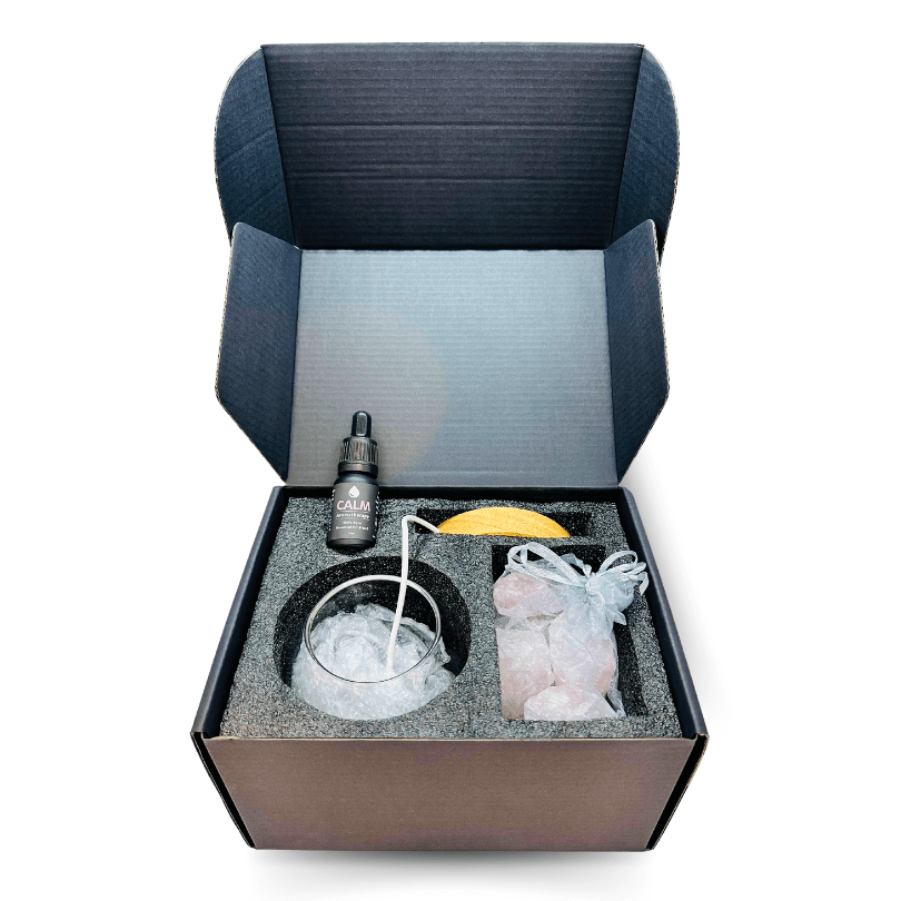 - Aromatherapy, using the crystal Light Diffuser, is a great way to infuse your space with our unique Calm 100% essential oil blend, expertly crafted with high vibrational frequency essential oils (including real rose!) to ease stress and promote a tranquil mindset.