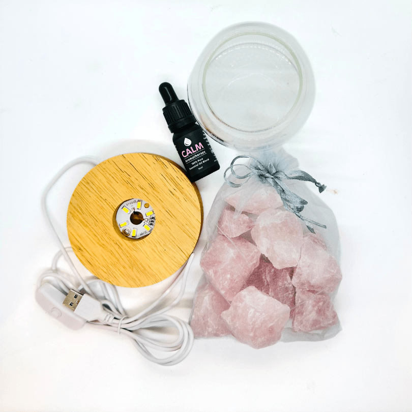 Elevate your self-care routine, embrace calmness, and adorn your home with the timeless elegance of the Rose Quartz Crystal Light Diffuser and Calm essential oil blend.