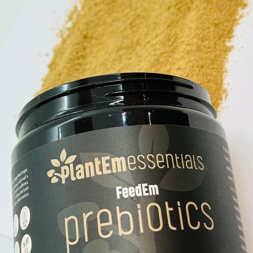 Prebiotics are naturally found in many fibre rich plant based foods which probiotics then eat. So we need to make sure we’re feeding them quality so they can continue with their gut goodness. And yes…FeedEm Prebiotics is top shelf quality!